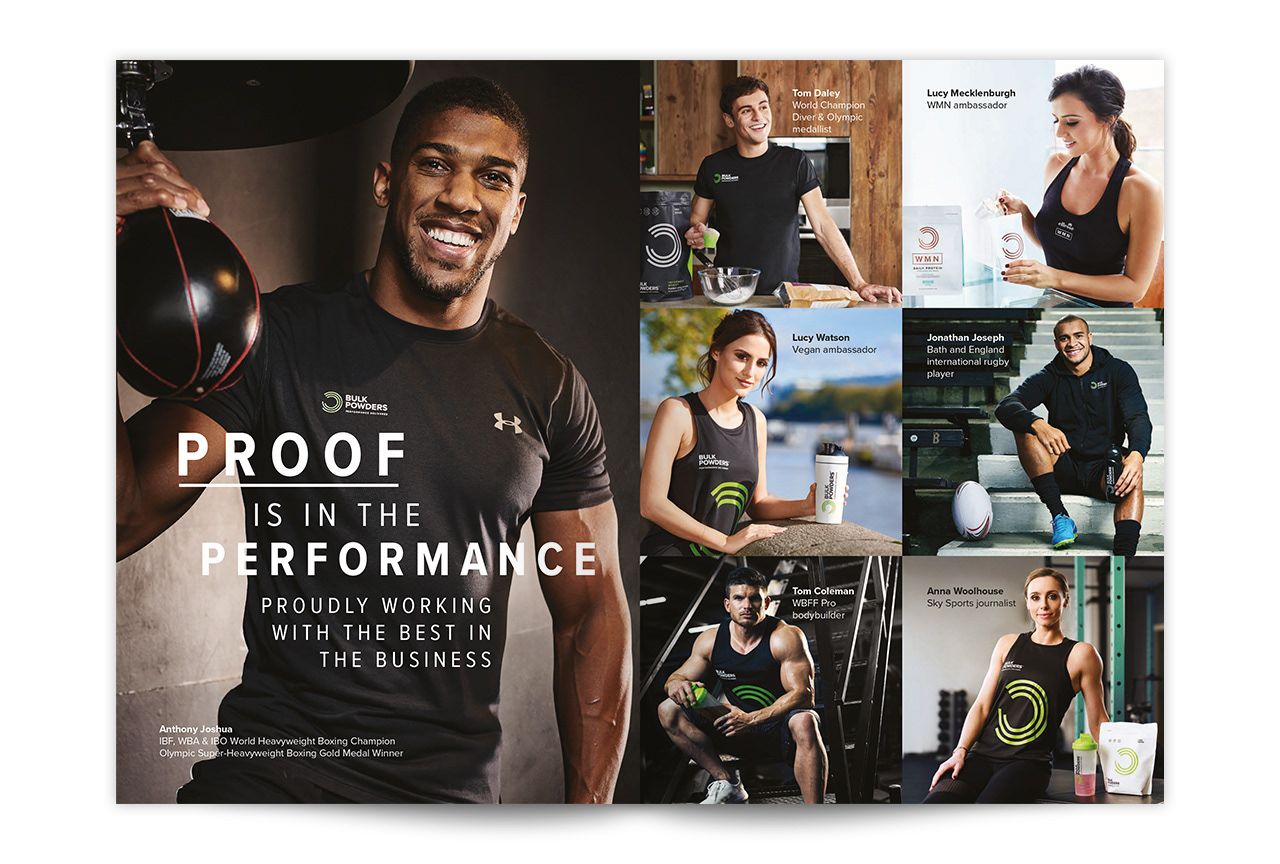 First time buyers at Bulk Powders received this Welcome brochure featuring product and ambassador highlights to hit home the full brand experience.